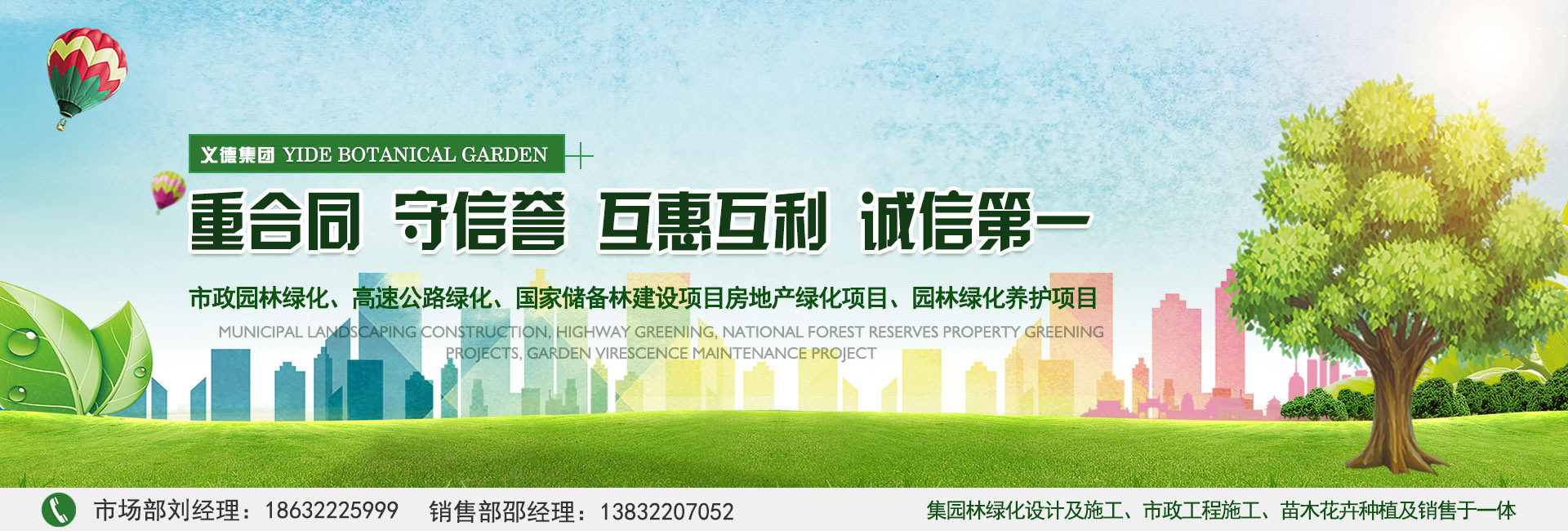 我公司本著重合同,守信譽,互惠互利,誠信第一的態度,踏實干事業,契約必踐行的園林宗旨,逐步發展為今天集園林綠化設計及施工、市政工程施工、苗木花卉種植及銷售等綜合性園林綠化行業公司。